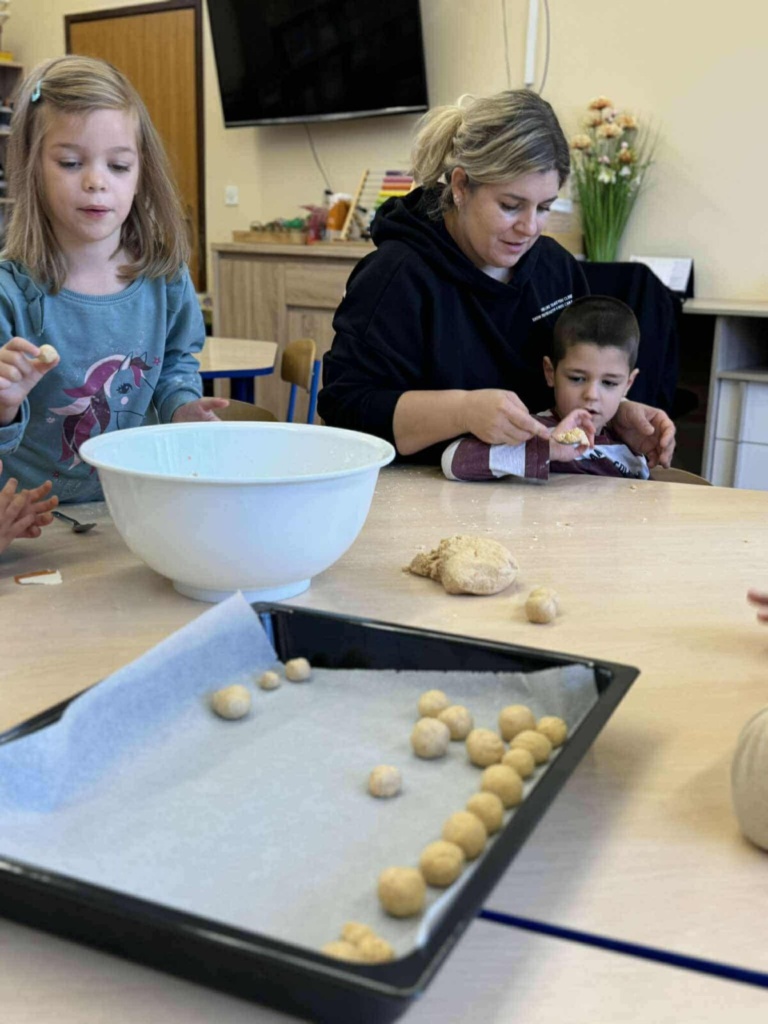 Tijekom listopada jesen je pokazala svu svoju ljepotu i bogatstvo. Jesenske boje iz okoliša prenijeli smo u sobu našeg poludnevnog boravka, pano, mape s likovnim radovima… Jesenski plodovi bili su inspiracija za istraživanje oblika, tekstura, okusa i mirisa te zajedničku igru, dramatizaciju i isprobavanje novih recepata za slastice.