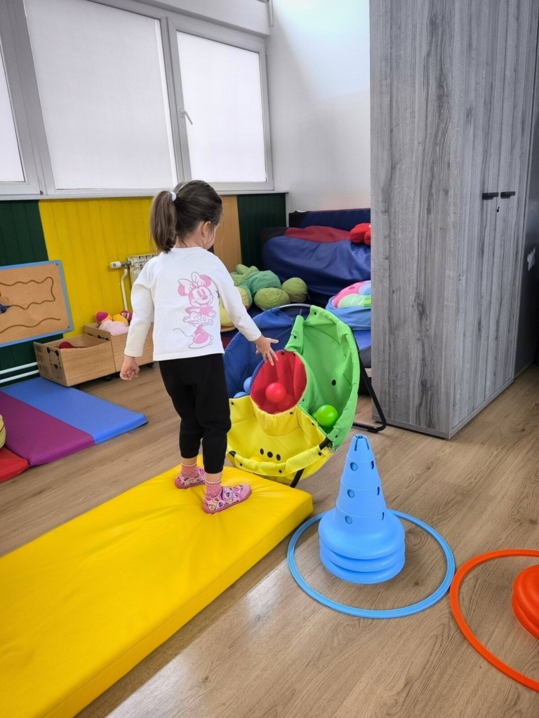 Senzomotorički razvoj dodatno se stimulira jer dijete koristi više osjetila: vid (prepoznavanje boja), dodir (različite teksture i oblici), propriocepciju i vestibularni sustav (kretanje, promjene položaja tijela). Takva multisenzorna stimulacija ključna je za djecu s razvojnim teškoćama jer pomaže boljoj obradi informacija i organizaciji osjetilnih podražaja.