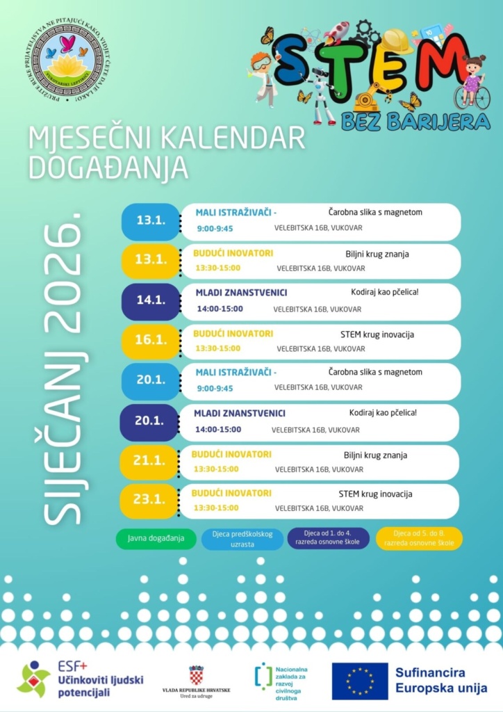 U siječnju nas očekuju zabavne radionice pune istraživanja, eksperimentiranja i kreativnog razmišljanja. Pridruži nam se i započni godinu uz znanost, tehnologiju, inženjerstvo i matematiku!