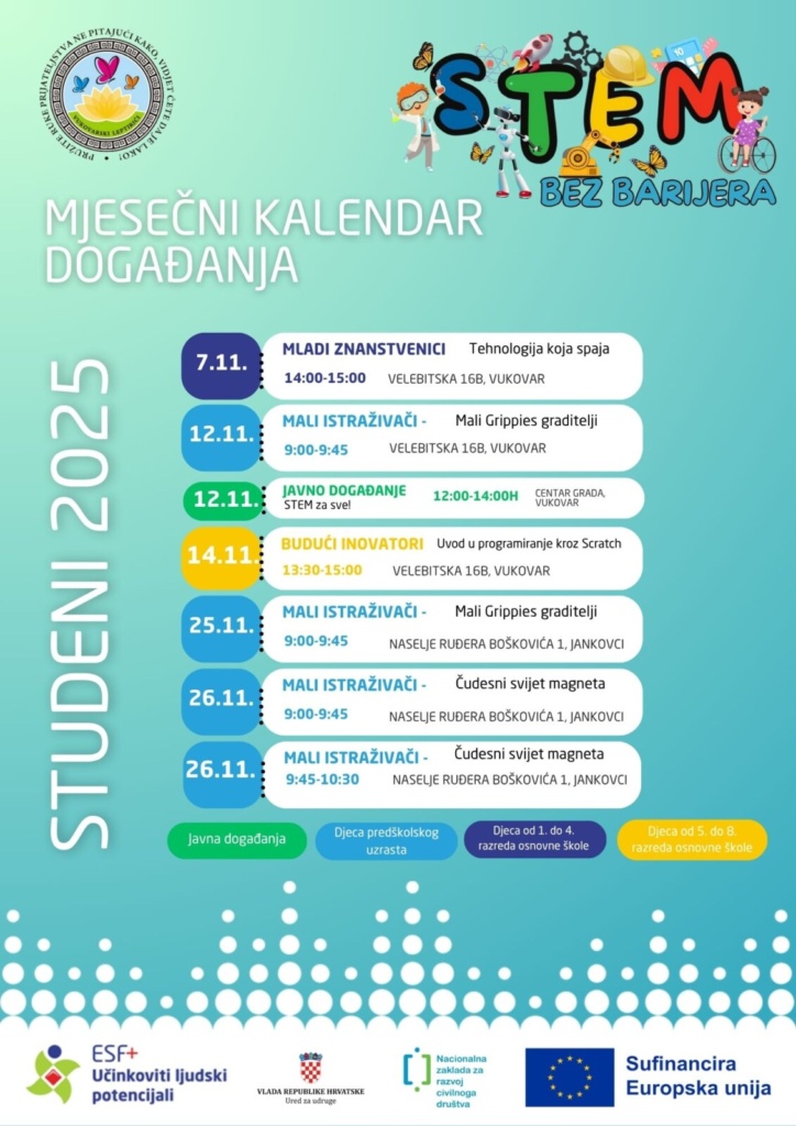 Studeni donosi radionice u kojima djeca uče kroz igru u sklopu projekta STEM bez barijera!