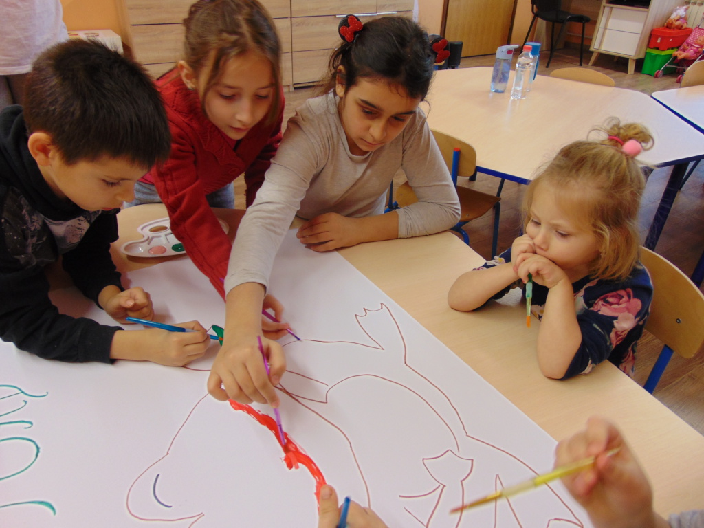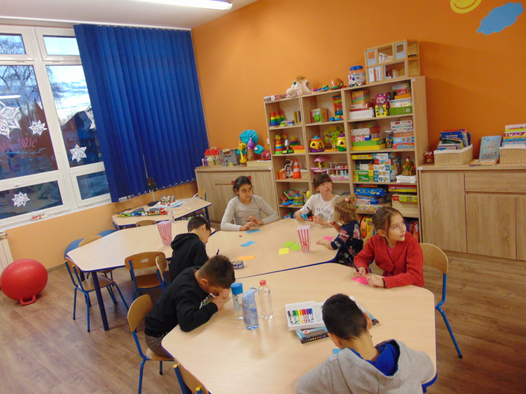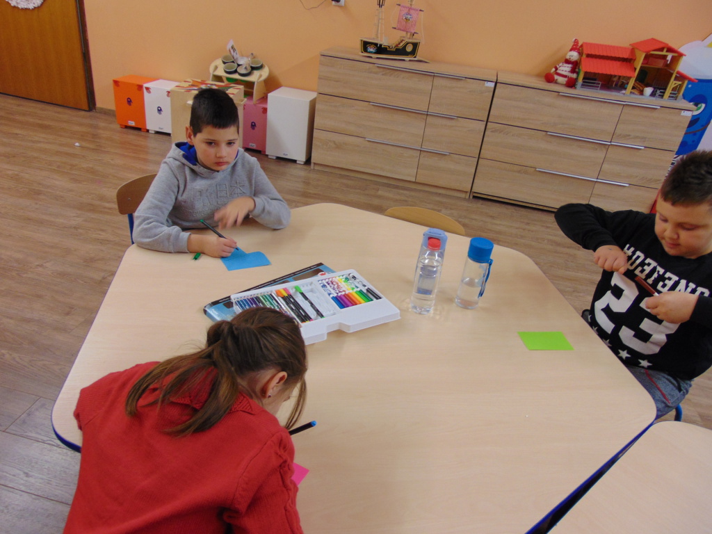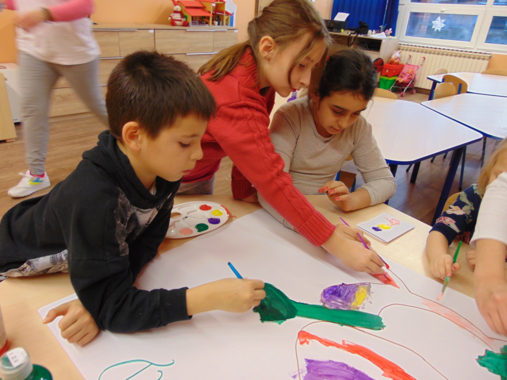 Materijali za radionicu: Hamer papir, tempere, kistovi, papir u boji dimenzije A6, flomasteri. Opis radionice: Dana 13.1.2021. godine u Udruzi Vukovarski leptirići održane su organizirane grupne aktivnosti pod nazivom “Žabica zahvalnosti” za djecu predškolske i školske dobi. Kao uvod u temu, izvoditeljice su najprije potaknule djecu na promišljanje o tome na čemu su sve zahvalni te potaknule razgovor o zahvalnosti. Naučili su što je to zahvalnost, kako tu riječ kažemo na engleskom te su uvidjeli koliko puno postoji stvari na kojima mogu biti zahvalni. Nakon toga izvoditeljice su ispričale kratku dramsku priču o žabici koja je predstavljala pozitivne emocije i zahvalnost te komarcu koji se stalno na nešto žalio pa je predstavljao negativne emocije. Priča završava tako da žabica pojede komarca. Nakon toga djeca su raspravljala o pouci priče te, zajedno s izvoditeljicama, došla do zaključka da zahvalnost pobjeđuje i tjera negativne emocije. Potom su bojali žabicu zahvalnosti temperama te pisala na papiriće u boji poruke o tome na čemu su sve zahvalna.