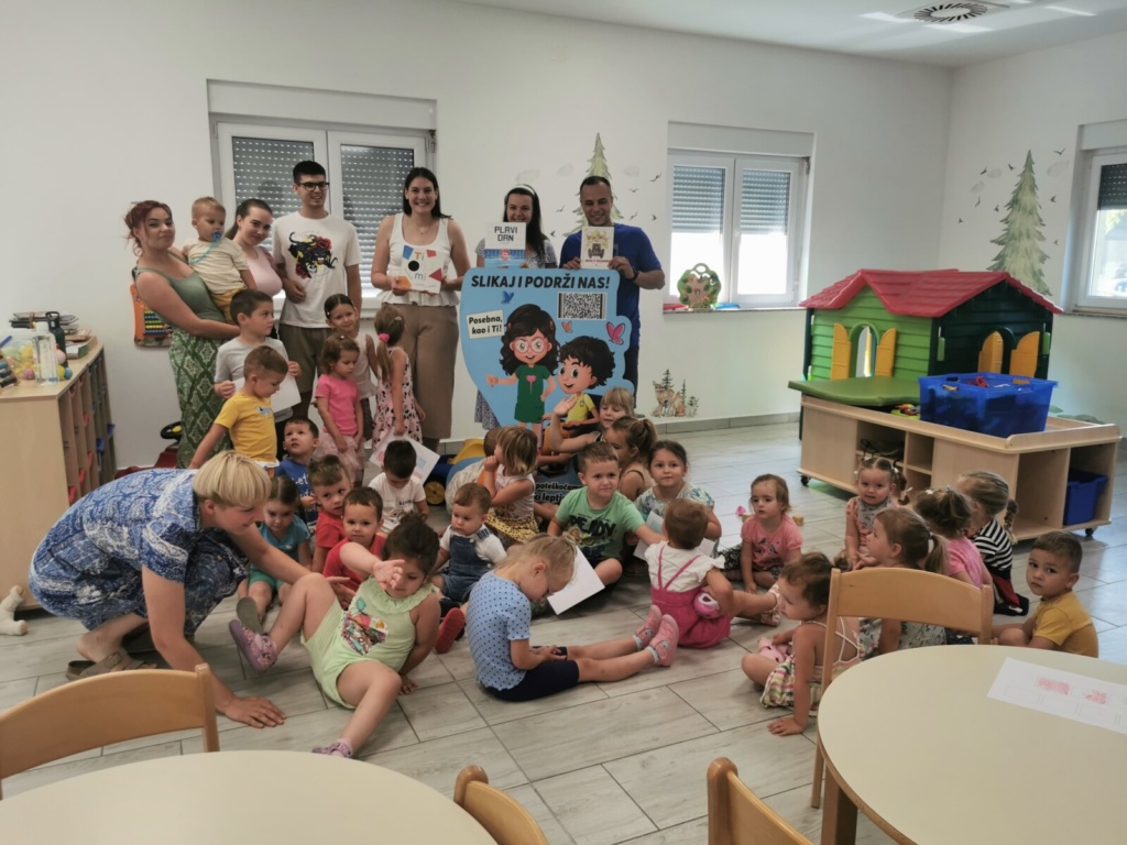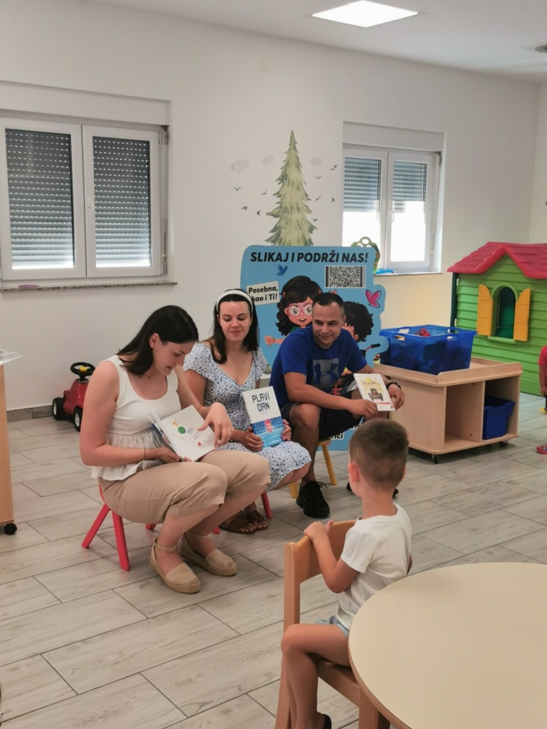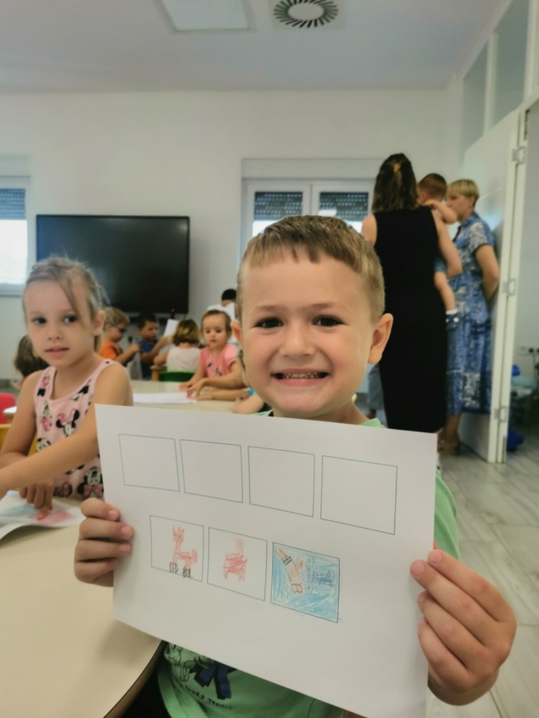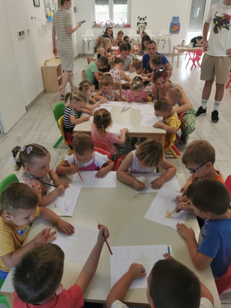 Nakon priče “Plavi dan”, organizirana je radionica u kojoj su djeca bila potaknuta da nacrtaju svoj “plavi dan” – ono što najviše vole raditi. Mališani su s entuzijazmom izražavali svoje omiljene aktivnosti kroz crteže i boje.