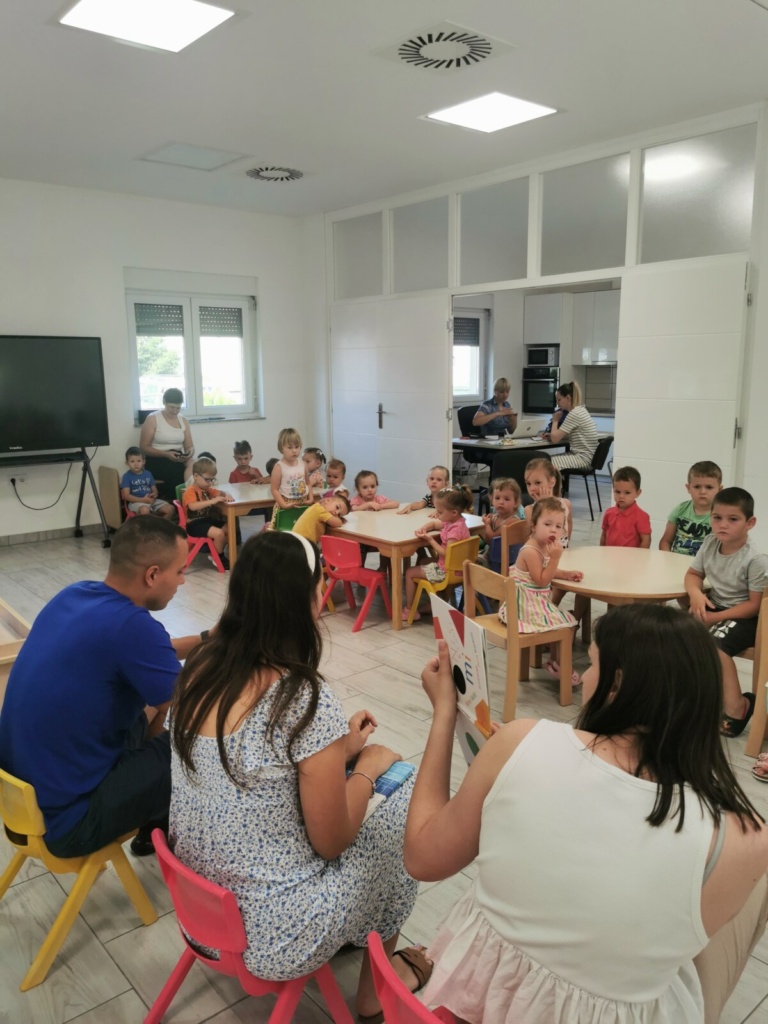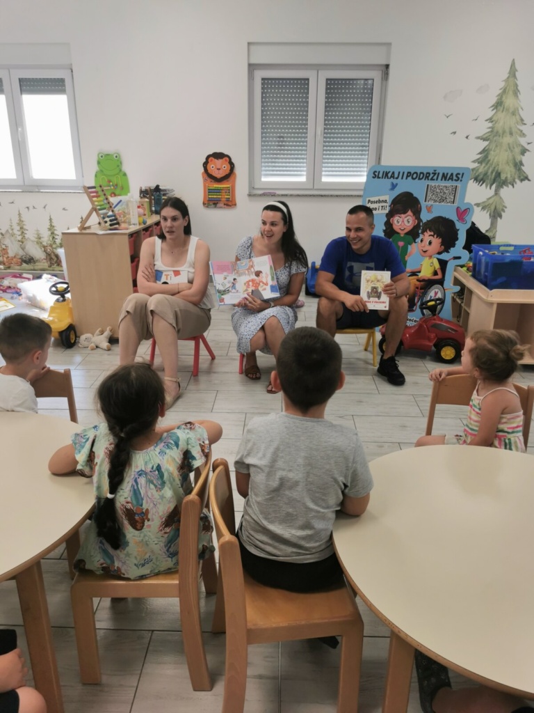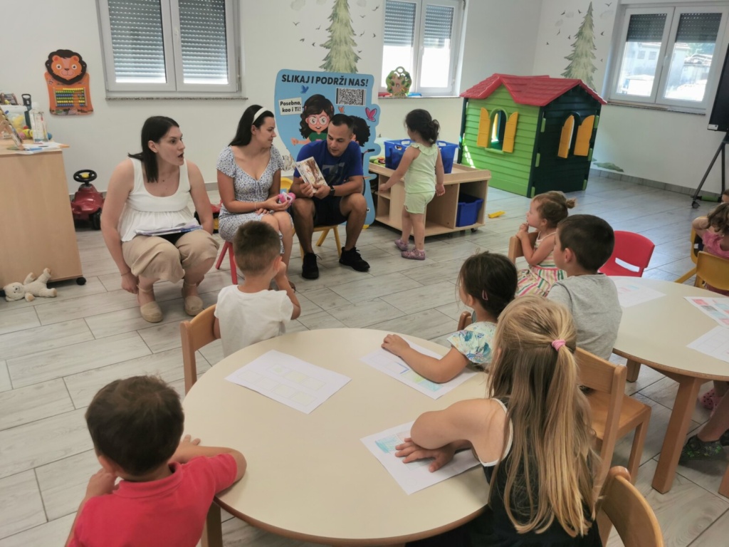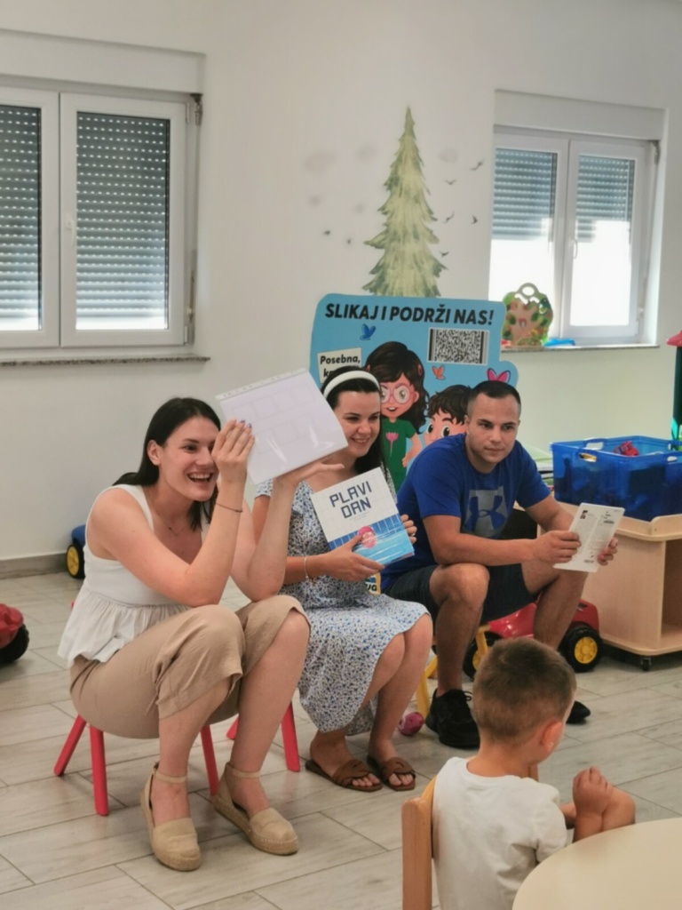 Nakon priče “Plavi dan”, organizirana je radionica u kojoj su djeca bila potaknuta da nacrtaju svoj “plavi dan” – ono što najviše vole raditi. Mališani su s entuzijazmom izražavali svoje omiljene aktivnosti kroz crteže i boje.