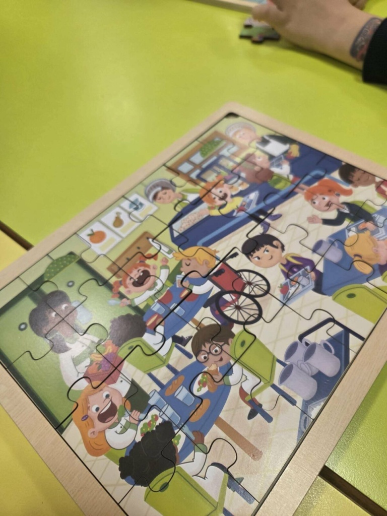 U Predškolskoj ustanovi Vrtuljak proveli smo dan ispunjen osmijesima, bojama i velikim srcima. Tema susreta bila su djeca s teškoćama, s posebnim naglaskom na djecu koja koriste invalidska kolica. Zajedno smo obojali dva plakata, pročitali dvije priče o junacima s teškoćama, prijateljstvu i emocijama te slagali puzzle koje prikazuju djecu u kolicima kako se druže i igraju. Upravo takvi prizori – djeca zajedno, ravnopravno i sretno – trebaju postati naša svakodnevica.