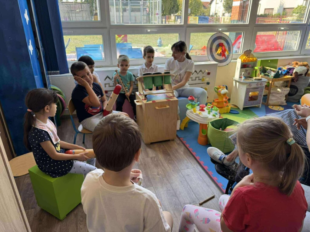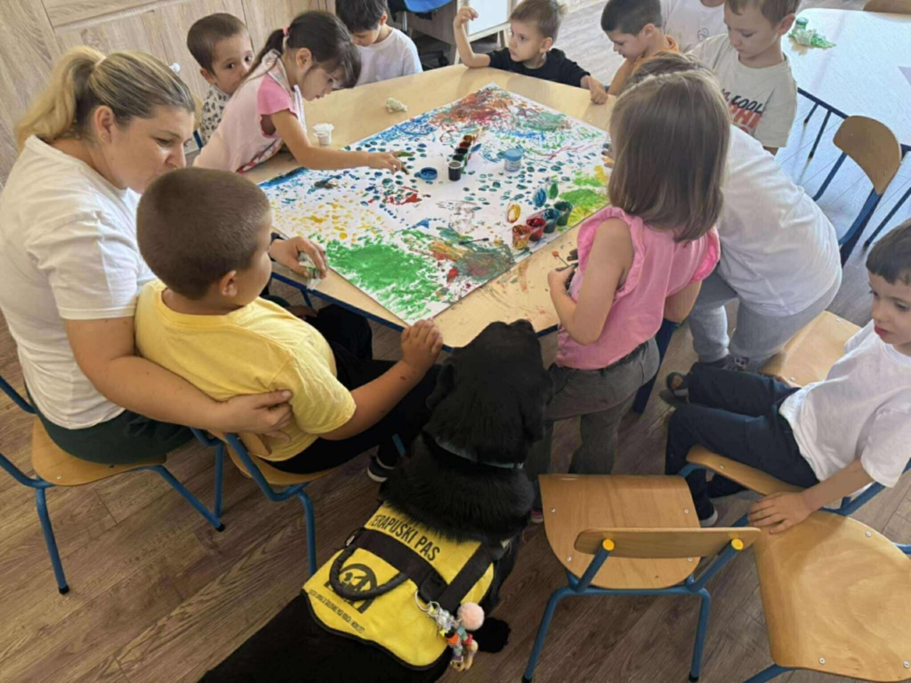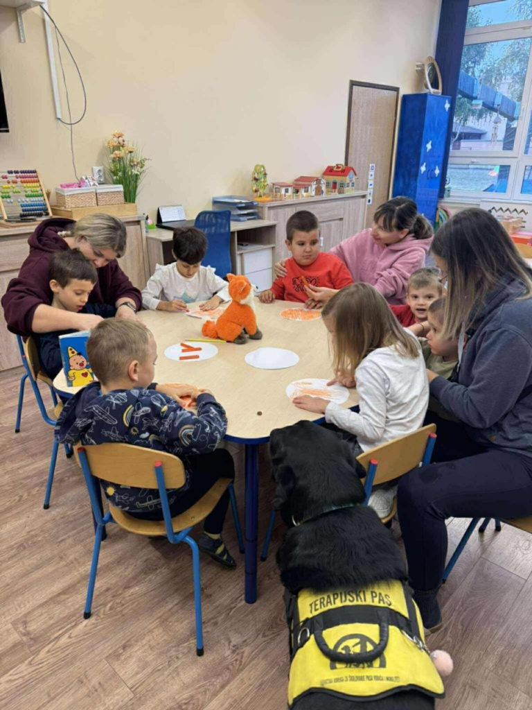 Učili smo nove pjesmice, svirali instrumente, igrali didaktičke igre i uživali u igri donošenja s Blackom. Posebno nas je razveselila šetnja s Blackom, kroz koju smo ponovili pravila sigurnog kretanja u prometu. Na kreativnim radionicama izrađivali smo jesenske radove, a snimili smo i rođendansku čestitku kako bismo razveselili dijete koje je bilo na operaciji. Djeca su s ponosom učila oblačiti Blackov prsluk i pomagati mu u pripremi za rad.