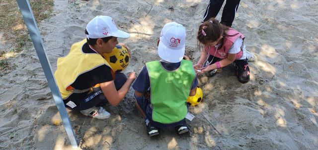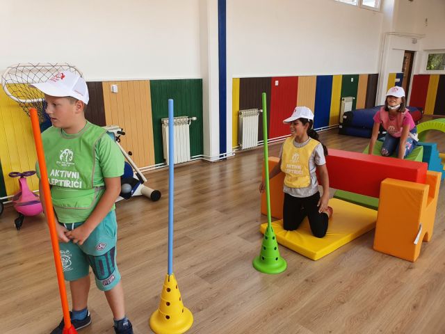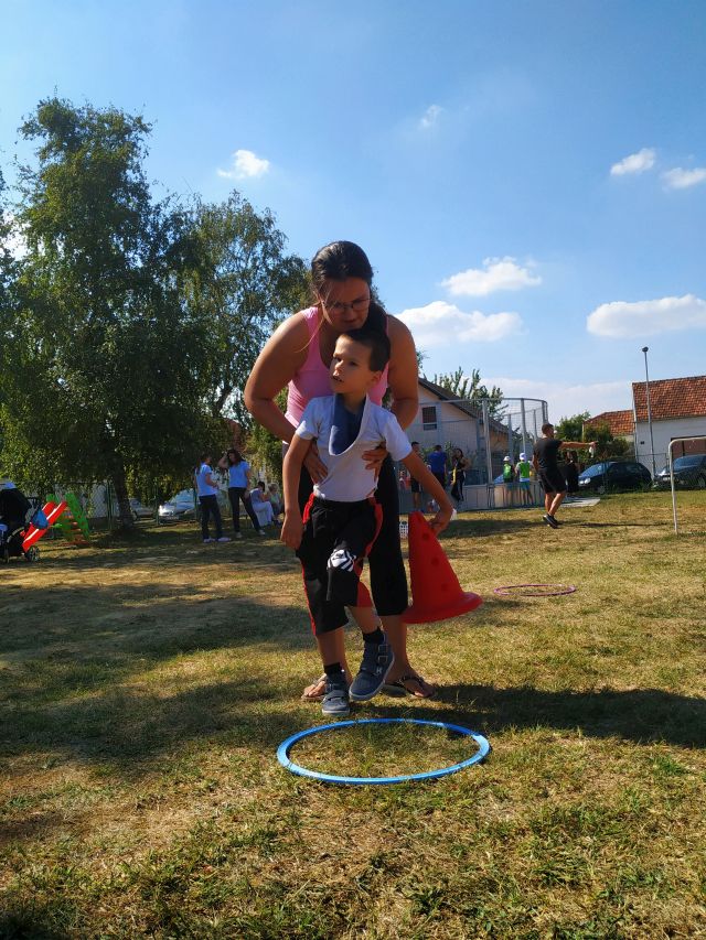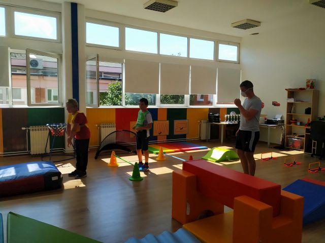 Voditelji sportskog programa Udruge pripremili su 5 sportskih stanica prilagođene korisnicima projekta: poligon, trčanje sa zadatkom, obručem pogodi čunj, nogomet i limbo.