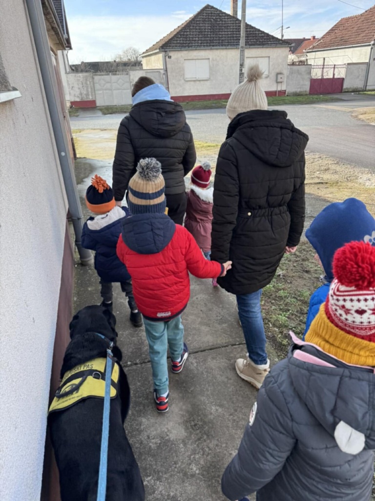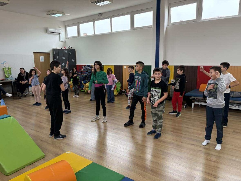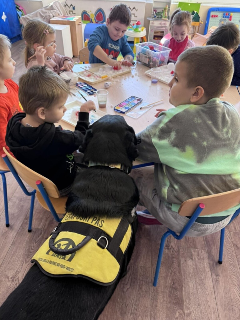 Sa školarcima smo posjetili kino i gledali crtani film Spužva Bob, a druženje smo nastavili klizanjem i toplom čokoladom. Veliko veselje donijelo je slaganje slagalica te susreti s terapijskim psom Blackom, koji je djeci pružio osjećaj sigurnosti, podrške i radosti. Uz Blacka su djeca pisala domaće zadaće, sudjelovala u poligonu i odlazila u zajedničke šetnje, čime smo dodatno poticali razvoj motorike, samopouzdanja i pozitivnih emocija.