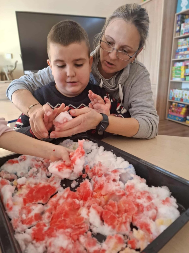 Siječanj je protekao u znaku zime. Razgovarali smo o zimskom razdoblju, snijegu i svemu što ono donosi, a posebno nas je razveselio pravi snijeg koji je potaknuo organizaciju kreativne radionice. Djeca su bojila i oblikovala snježne forme te u njima skrivala figurice, razvijajući maštu, istraživački duh i finu motoriku.
